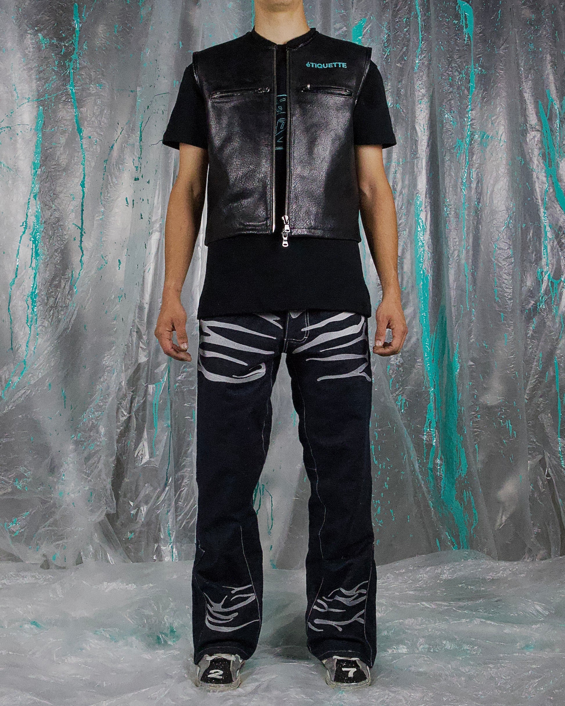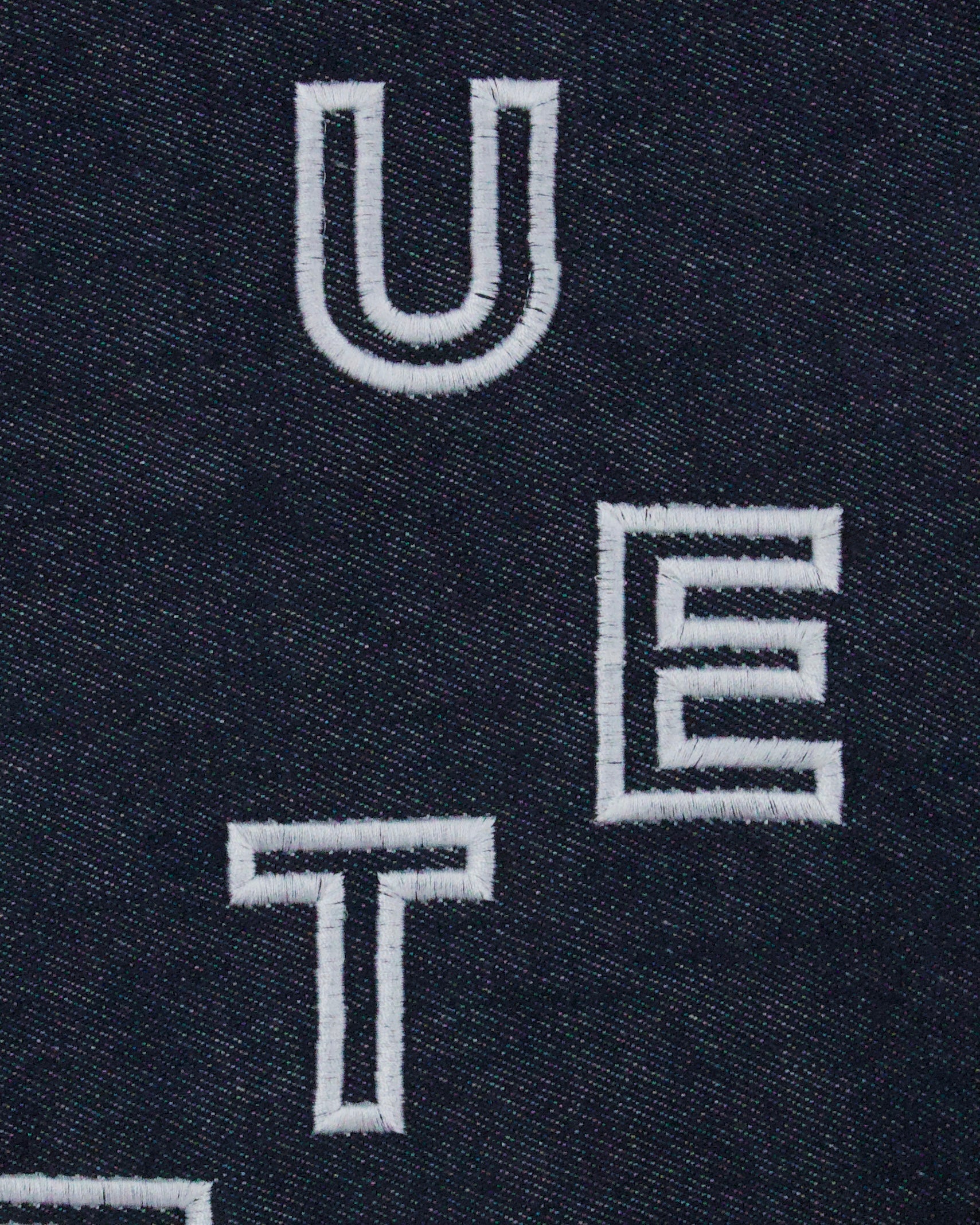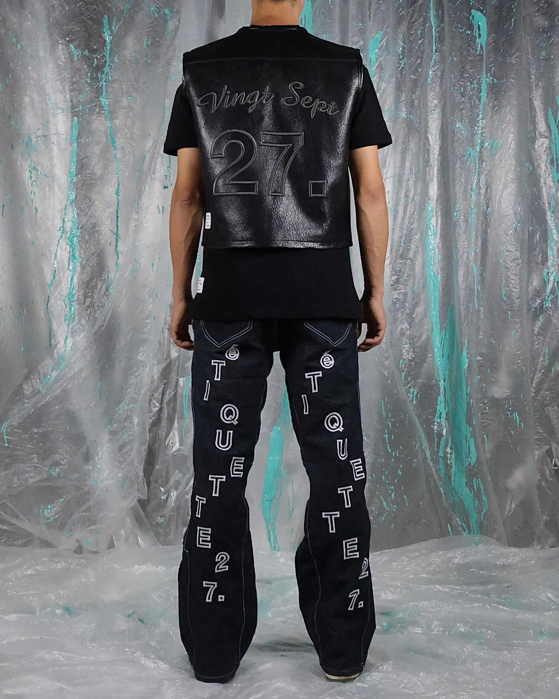 Sul davanti ricamo bianco. Sul retro ricamo “éTIQUETTE27.” Bianco.